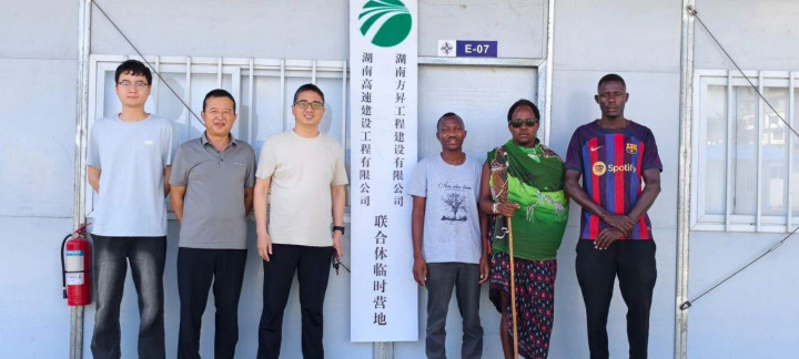 (湖南高速临时营地在坦桑尼亚挂牌建立。)